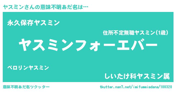 | 女子向けラノベタイトル風あだ名 | 『ヤスミンの雑貨屋さん』 |