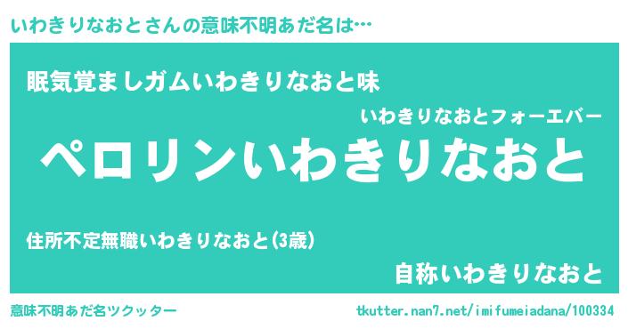 | 男性向けラノベタイトル風あだ名 | 『イワキリナオトアートオンライン』 |
