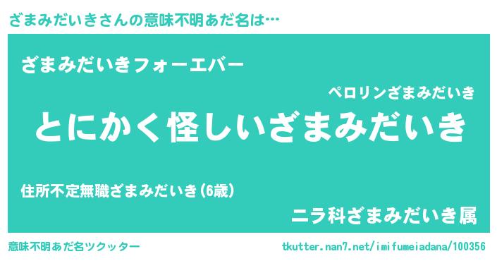 | 欧米人風あだ名 | 『ウサインざまみだいき』 |