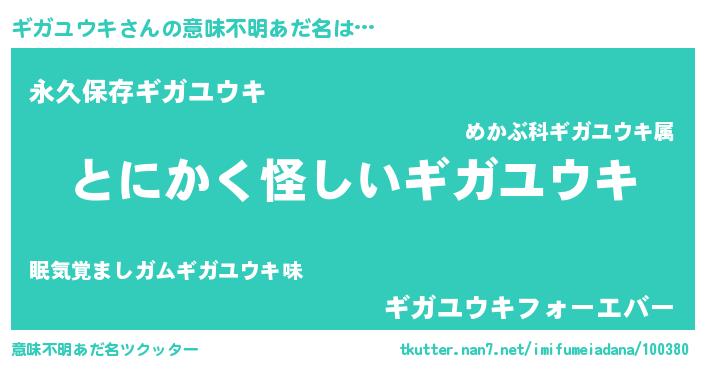 | ヘコむあだ名 | 『ギガお』『ギガユウキ(笑)』『牛乳』 |