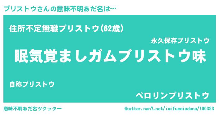 | 男性向けラノベタイトル風あだ名 | 『おまえをオタクにしてやるから、俺をブリストウにしてくれ! 』 |