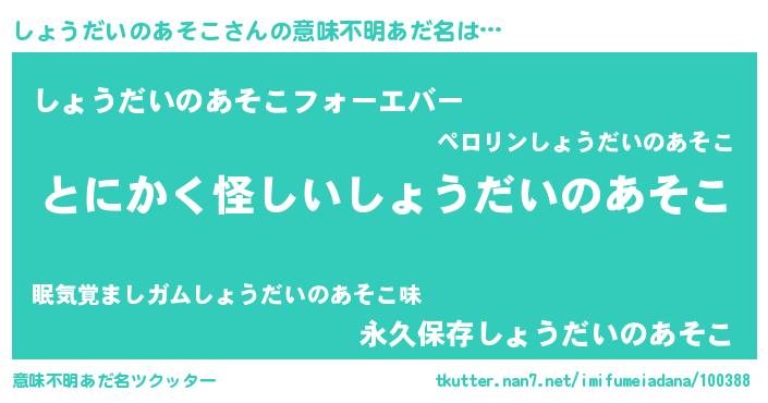 | ポケモン風あだ名 | 『ヒショウダイノアソコ』『ショウダネ』 |