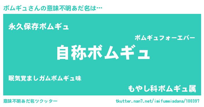 | ヘコむあだ名 | 『ボムギュ(小並感)』『なまこ酢』 |
