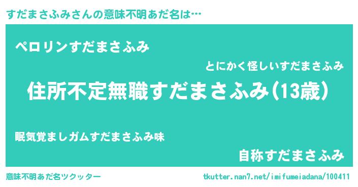 | 男性向けラノベタイトル風あだ名 | 『この素晴らしい世界にすだまさふみを!』 |
