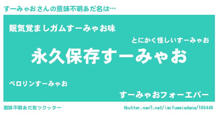男性向けラノベタイトル風あだ名 | 『すーみゃおという概念が存在しない退屈な世界 』 |