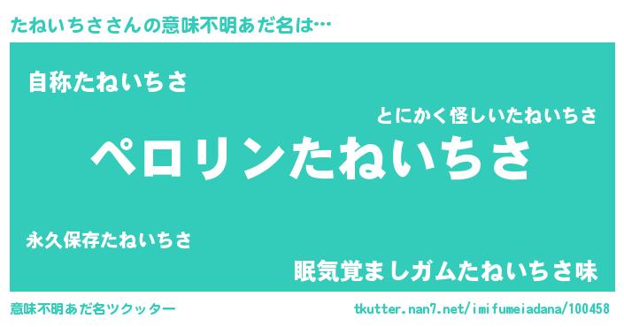 | 欧米人風あだ名 | 『たねいちさ・ステッグマイヤー』 |