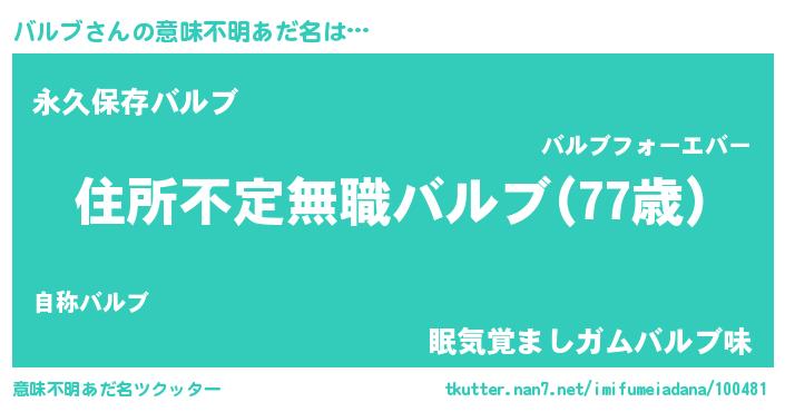 | 胡散臭い通販商品みたいなあだ名 | 『あなたにだけ特別に提供する世界で10本だけ現存している希少なブランデー…その名も「バルブ」』 |