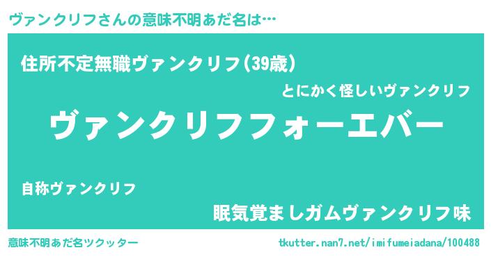 | 男性向けラノベタイトル風あだ名 | 『冴えないヴァンクリフの育てかた』 |