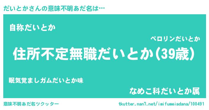 | 男性向けラノベタイトル風あだ名 | 『この素晴らしい世界にだいとかを!』 |