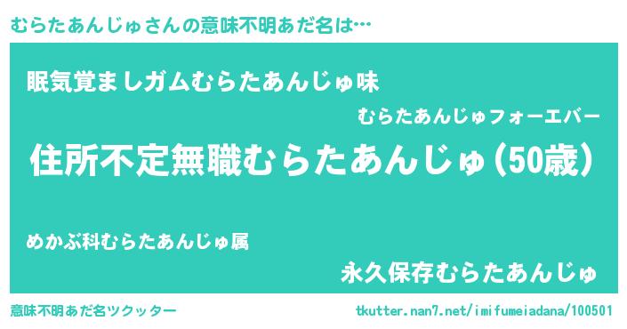 | 女子向けラノベタイトル風あだ名 | 『悪役むらたあんじゅに転生したようですが、知った事ではありません』 |