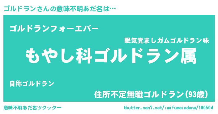 | 女子向けラノベタイトル風あだ名 | 『ゴルドランの玉の輿計画!』 |