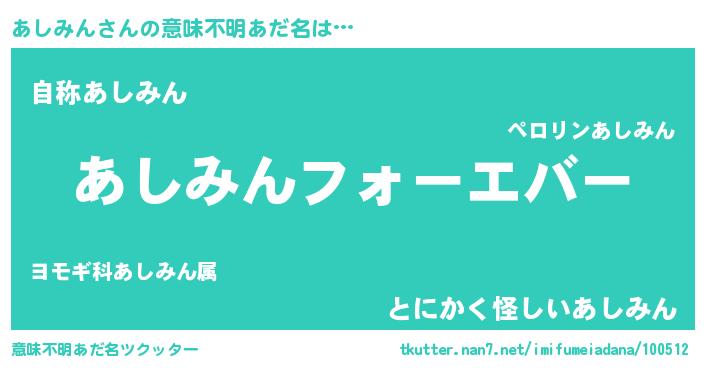 | ヒーロー風カッコイイあだ名 | 『ウルトラあしみんマン』『黄金騎士アシ』 |