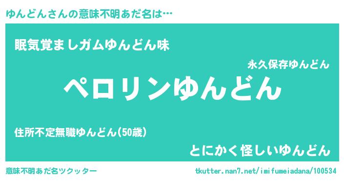 | 男性向けラノベタイトル風あだ名 | 『ゆんどんの憂鬱』 |