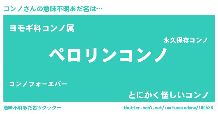 | 男性向けラノベタイトル風あだ名 | 『コンノの憂鬱』 |