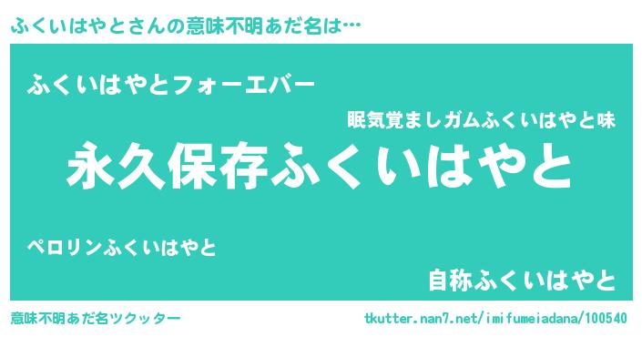 | 胡散臭い通販商品みたいなあだ名 | 『前代未聞の健康食品…その名も「ふくいはやと」』 |