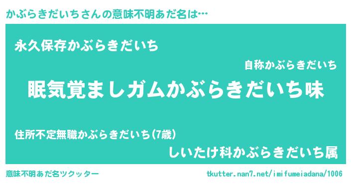 | ヘコむあだ名 | 『かぶらきだいち(小並感)』『かぶお』 |