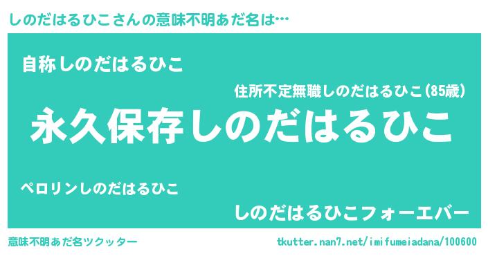 | 胡散臭い通販商品みたいなあだ名 | 『前代未聞の健康食品…その名も「しのだはるひこ」』 |
