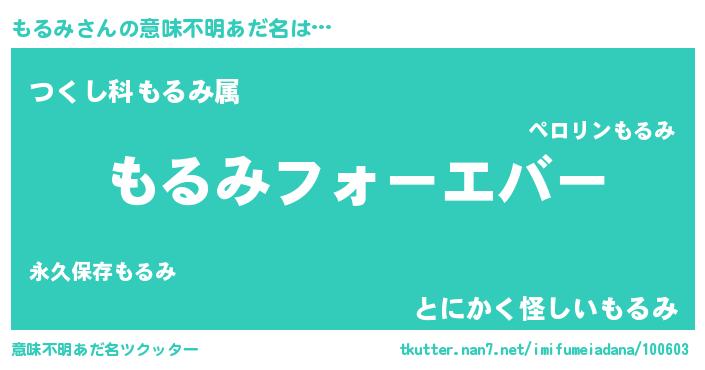 | 男性向けラノベタイトル風あだ名 | 『やはりもるみの青春ラブコメはまちがっている 』 |