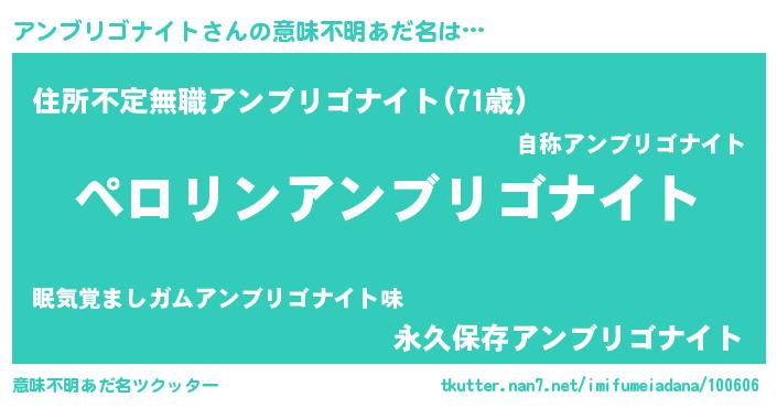 | 男性向けラノベタイトル風あだ名 | 『アンブリゴナイトの憂鬱』 |