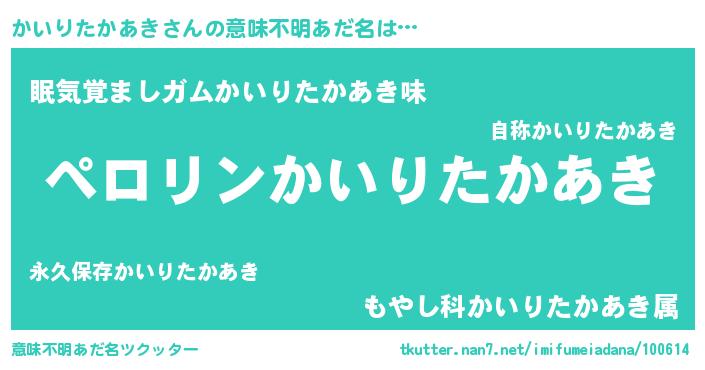 | 男性向けラノベタイトル風あだ名 | 『カイリタカアキアートオンライン』 |