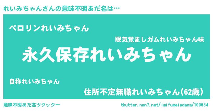 | 男性向けラノベタイトル風あだ名 | 『れいみちゃんという概念が存在しない退屈な世界 』 |