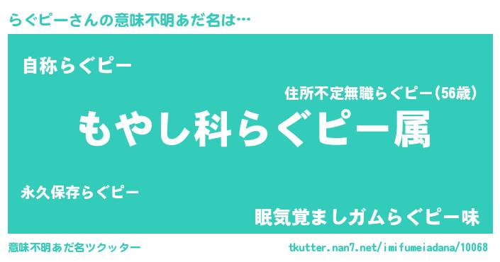 | ヘコむあだ名 | 『らぐピー(震え声)』『らぐっちょ』 |