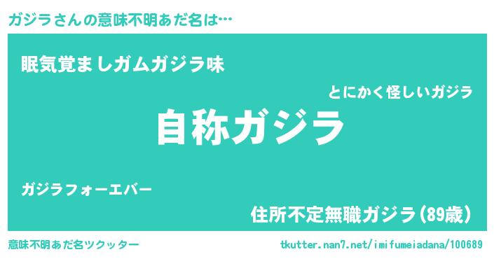 | 男性向けラノベタイトル風あだ名 | 『Re:ガジラから始める異世界生活』 |