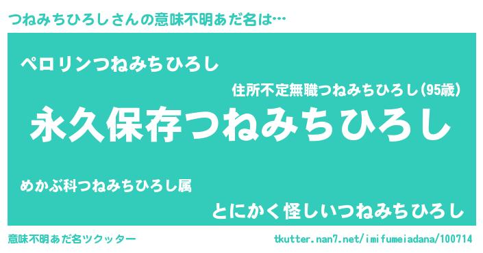 | 胡散臭い通販商品みたいなあだ名 | 『来世でも幸せになれる健康食品…その名も「つねみちひろし」』 |