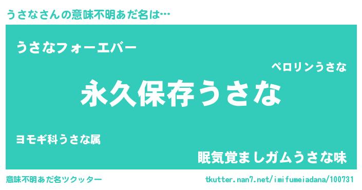 | ヒーロー風カッコイイあだ名 | 『ネオウサナ』『ウルトラうさなマン』 |