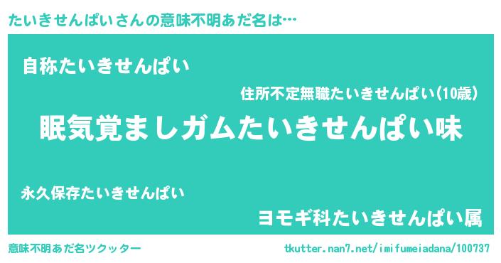 | ヘコむあだ名 | 『たいきせんぱい(笑)』『なまこ酢』 |