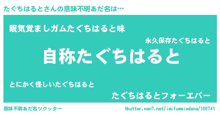 | 女子向けラノベタイトル風あだ名 | 『闇のたぐちはると』 |