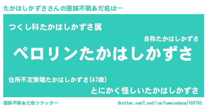 | 男性向けラノベタイトル風あだ名 | 『たかはしかずさの憂鬱』 |