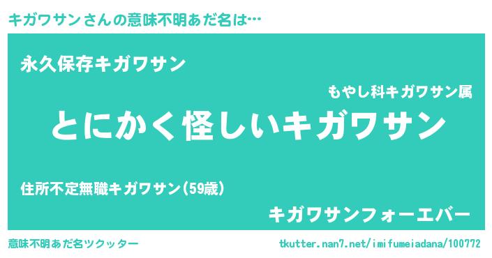 | 男性向けラノベタイトル風あだ名 | 『キガワサンの嫁は女の子じゃないと思った?』 |