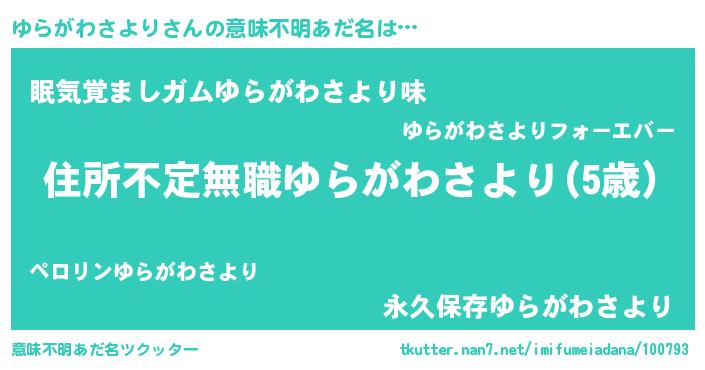 | ヘコむあだ名 | 『ゆらがわさより(小並感)』『なまこ酢』 |