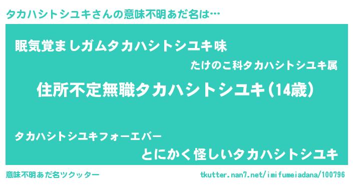 | 男性向けラノベタイトル風あだ名 | 『この素晴らしい世界にタカハシトシユキを!』 |