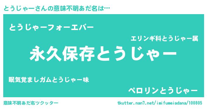 | 胡散臭い通販商品みたいなあだ名 | 『来世でも幸せになれる健康食品…その名も「とうじゃー」』 |