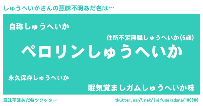 | 胡散臭い通販商品みたいなあだ名 | 『億万長者になれる霊験あらたかなお札…その名も「しゅうへいか」』 |