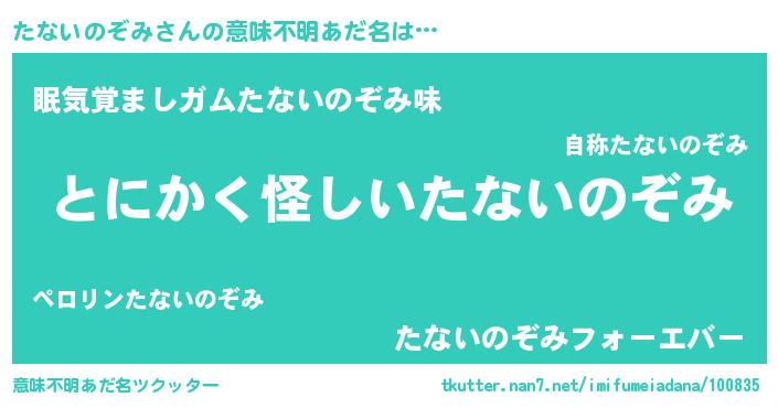 | 胡散臭い通販商品みたいなあだ名 | 『信頼と実績のペンダント…その名も「たないのぞみ」』 |