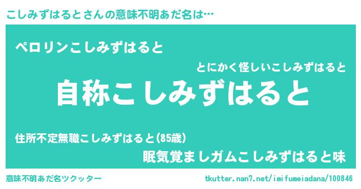 | 女子向けラノベタイトル風あだ名 | 『こしみずはるとなんてお断りですっ。』 |