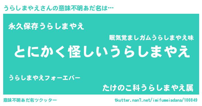 | 欧米人風あだ名 | 『ウサインうらしまやえ』 |