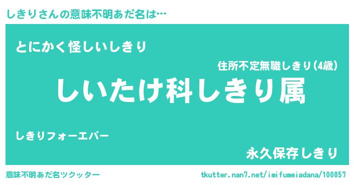 | 胡散臭い通販商品みたいなあだ名 | 『信頼と実績のサプリメント…その名も「しきり」』 |