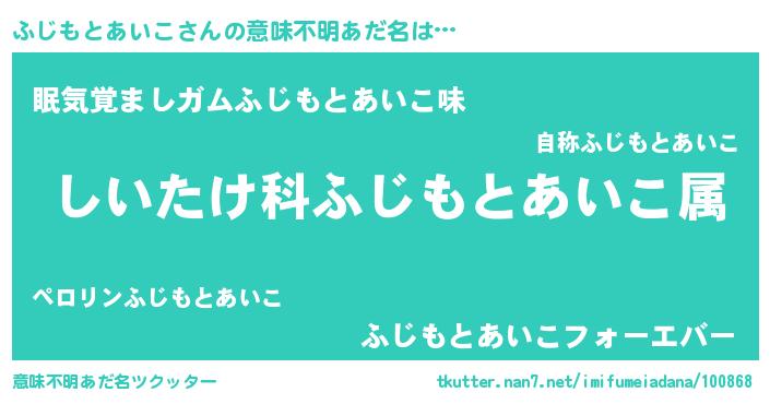 | 男性向けラノベタイトル風あだ名 | 『フジモトアイコスレイヤー』 |