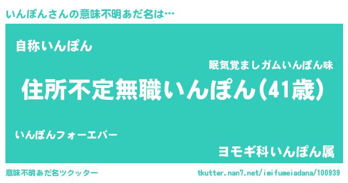 | ヒーロー風カッコイイあだ名 | 『仮面インダー』『究極戦士インポン』 |