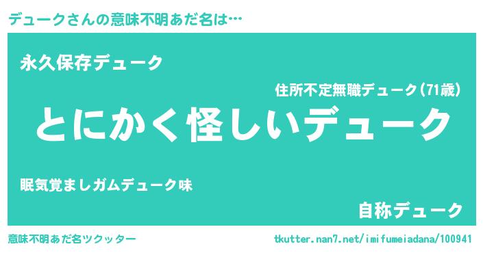 | 胡散臭い通販商品みたいなあだ名 | 『信頼と実績のサプリメント…その名も「デューク」』 |