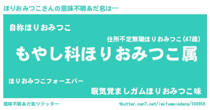 | 男性向けラノベタイトル風あだ名 | 『転生したらほりおみつこだった件』 |