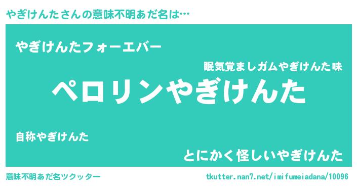 | 男性向けラノベタイトル風あだ名 | 『やぎけんたの憂鬱』 |