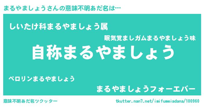 | 男性向けラノベタイトル風あだ名 | 『Re:まるやましょうから始める異世界生活』 |