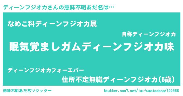 | 男性向けラノベタイトル風あだ名 | 『ノーゲーム・ノーディーンフジオカ』 |