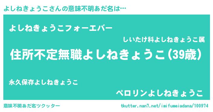 | 伝説のあだ名 | 『秘められし忍者よしねきょうこ』 |