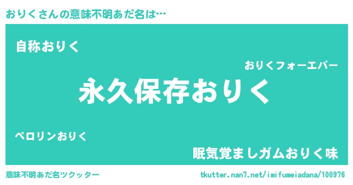 | 男性向けラノベタイトル風あだ名 | 『おりくという概念が存在しない退屈な世界 』 |